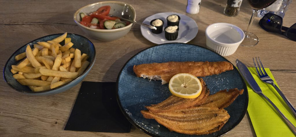 Na het afleveren van de laser kon ik na een busreis naar Port Zélande vrijdag nog aanschuiven voor gebakken vis in de Thuishaven.