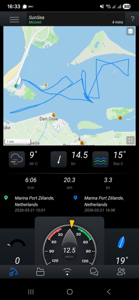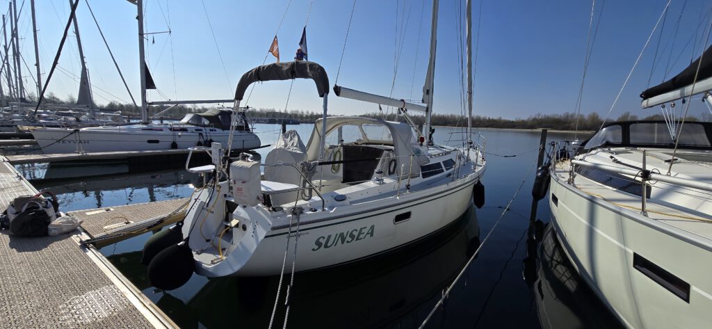 Na de Grevelingencup is de SunSea op zondag weer teruggevaren naar Bruinisse; dit was mijn eerste solotocht maar de omstandigheden waren zeer ontspannen. Op zondag is het schip aan de buitenkant weer helemaal schoongemaakt en ligt te glimmen in de box.