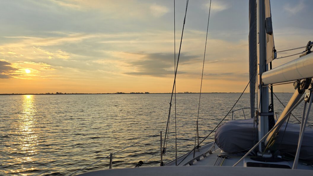 In de aanloop naar de Grevelingencup kunnen we de SunSea afmeren in Port Zélande, vanwaar de wedstrijden georganiseerd worden. Op vrijdagavond zijn Patrick en David aan boord gegaan om de eerste mijlen af te leggen. Het doel was de Stampersplaat, waar een kleine inham aanlegplaatsen biedt die onderdeel zijn van het natuurbehoud door staatsbosbeheer en onderdeel van Natura2000.